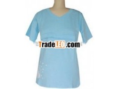 Maternity shirt with zipper in the middle. double zipper puller init. V neck with rib elastane.Description: Women''s Short sleeve Tshirt, Maternity shirt orfeed baby used.
